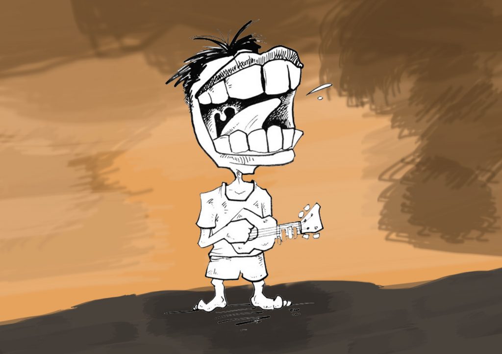 Kakak bermain gitar dan adik bernyanyi dengan cerewet