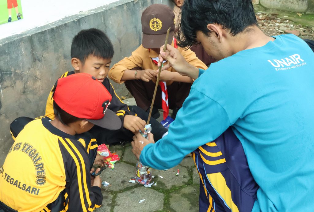UNAIR NEWS – Sebagai wujud implementasi semangat UNAIR Berdampak, Kelompok KKN-BBK 7 (Kuliah Kerja Nyata – Belajar Bersama Komunitas) Universitas Airlangga Desa Tegalrejo melaksanakan kegiatan sosialisasi pemilahan sampah dan pembuatan eco-brick di SDN 3 Tegalrejo, pada Sabtu, (17/1/2026). Kegiatan ini diikuti oleh siswa kelas 1 hingga 6 dengan tujuan menumbuhkan kesadaran dan kepedulian terhadap lingkungan sejak usia dini. Dalam kegiatan tersebut, Mahasiswa KKN-BBK 7 memperkenalkan berbagai jenis sampah, meliputi sampah organik, non-organik, serta B3 (Bahan Berbahaya dan Beracun), sekaligus mengajak siswa untuk mempraktikkan secara langsung pembuatan eco-brick dengan memanfaatkan sampah plastik.
