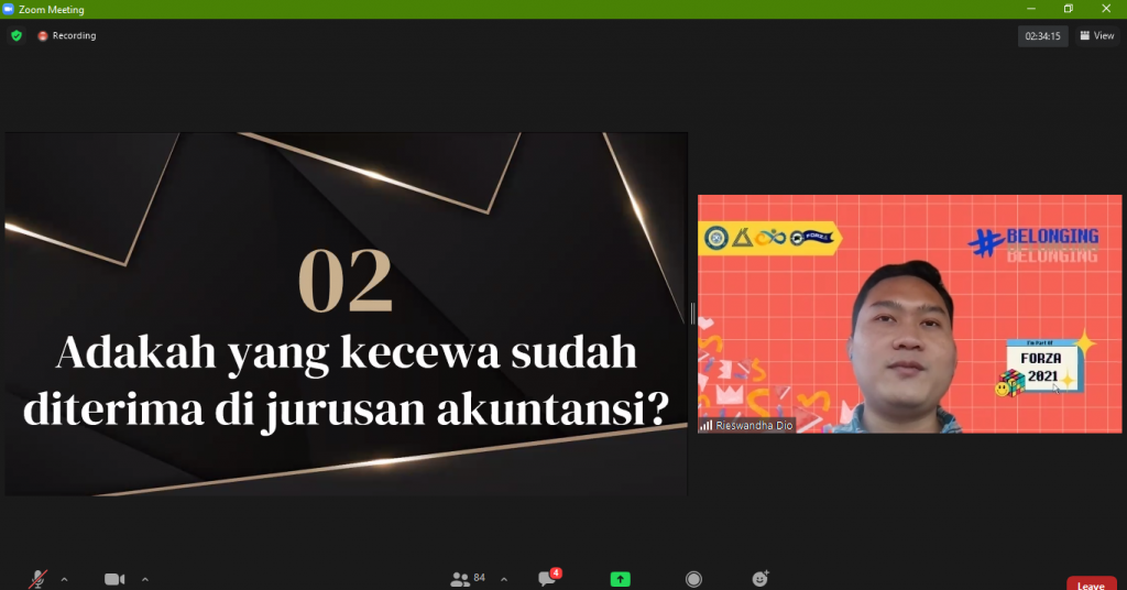 Rieswandha Dio Primasatya, S.A., CBDA, Alumni Akuntansi UNAIR memberikan beberapa gambaran pekerjaan akuntan di sebuah perusahaan maupun pemerintah pada serangkaian Forza 2021 pada Minggu (28/9/21). Dalam paparanya beliau menyampaikan bahwa Seorang akuntan, bertugas untuk menyiapkan laporan keuangan seperti perpajakan dan memastikan pajak dibayar tepat waktu. Tidak hanya itu, Seorang akuntan juga dapat menjadi seseorang yang dapat membantu meningkatkan keuangan suatu perusahaan dengan cara mengevaluasi anggaran.