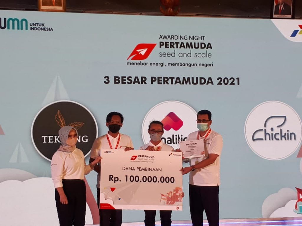 Dalam awarding night Pertamuda Jumat (1/10/2021), pencetus Analitica, Hilmy Muktafi (S1 Sistem Informasi) dan Wisnu Aditya (S1 Ekonomi Islam) menerima penyerahan simbolis hadiah pendanaan Pertamina senilai 100 juta Rupiah. Penghargaan tersebut diberikan langsung oleh CEO Pertamina Nike Widyawati di Hotel Patra Jasa, Bali.
