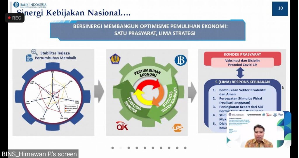 “While the five policy responses are the opening of productive and safe sectors, acceleration of fiscal stimulus, increasing credit from the demand and supply side, monetary stimulus and macroprudential policy, and the digitalization of the economy and finance, especially MSMEs,” explained Dr. Solikin.