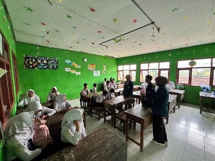 Penyampaian materi dilakukan melalui sistem presentasi interaktif dan berbagai kegiatan menarik. Untuk mencairkan suasana, tim mengadakan permainan kecil dan memberikan hadiah bermanfaat berupa buku tulis serta alat tulis bagi para pemenang. Sebagai bentuk evaluasi, para siswa juga mengikuti Pre-Test dan Post-Test secara daring untuk mengukur tingkat pemahaman mereka terhadap materi yang disampaikan.