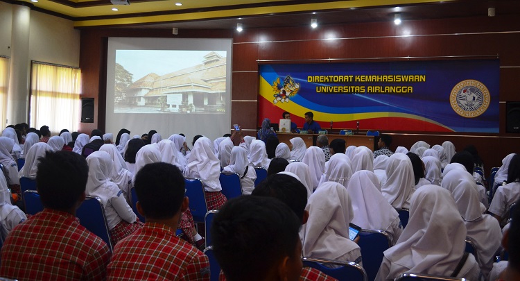 UNAIR NEWS – Universitas Airlangga (UNAIR) kembali dikunjungi siswa-siswi SMA. Selasa (19/1), sejumlah 150 siswa bersama 15 guru pendamping SMAN 4 Bojonegoro memenuhi Aula Student Center lantai 3, Kampus C, UNAIR.