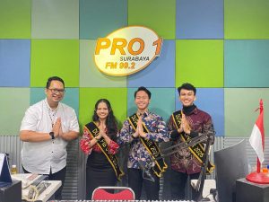 Joe Adi Yuanda, Kezia Elcamarie Kippuw, Achmad Faisal Bawafi, dan Rakanda Rasydan Prabaswara saat berada di Gedung Pro 1 RRI Surabaya (Dok. Duta FIB UNAIR
