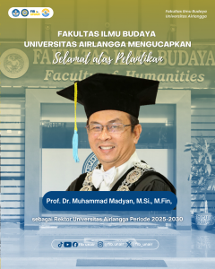 FIB NEWS – Segenap sivitas akademika Fakultas Ilmu Budaya Universitas Airlangga (FIB UNAIR) menyampaikan ucapan selamat atas pelantikan Prof. Dr. Muhammad Madyan, M.Si., M.Fin. sebagai