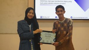 Penerimaan Sertifikat Kepada Pemateri,Ricky Rivaldi (Foto: Istimewa) FIB NEWS – Ricky Rivaldi, Wakil Presiden Badan Eksekutif Mahasiswa (BEM) Universitas Airlangga 2024 sekaligus Social Media Analyst