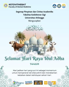 Selamat Hari Raya Iduladha 1446 H Segenap Pimpinan dan Civitas Academika Fakultas Kedokteran Gigi Universitas Airlangga mengucapkan: “Selamat merayakan Hari Raya Iduladha 1446 H.” Semoga