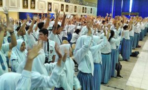 SMA Negeri VI Kota Surabaya membawa 250-an siswa-siswinya kelas XII berkunjung ke Universitas Airlangga, Senin (24/10).