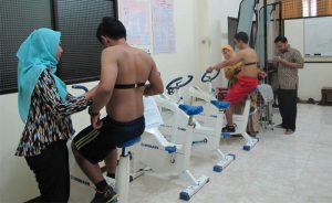 Calon atlet Airlangga Indonesia Denali Expedition kembali melakukan pemeriksaan tes kebugaran di Departemen Ilmu Faal, FK, UNAIR, Rabu (26/10).