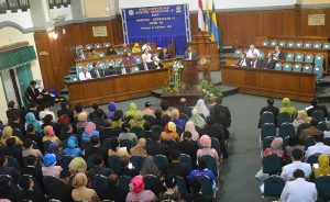 Dekan Fakultas Kedokteran Universitas Airlangga Prof. Dr. Soetojo, dr., Sp.U(K), melantik dan menyumpah 169 Ahli Madya Kesehatan, di Aula FK, Rabu (15/9)