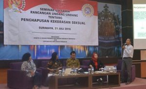 Komite III (DPD RI), menggelar Seminar Uji Sahih RUU tentang penghapusan kekerasan seksual di Aula Kahuripan Kampus C UNAIR, Kamis (21/7).