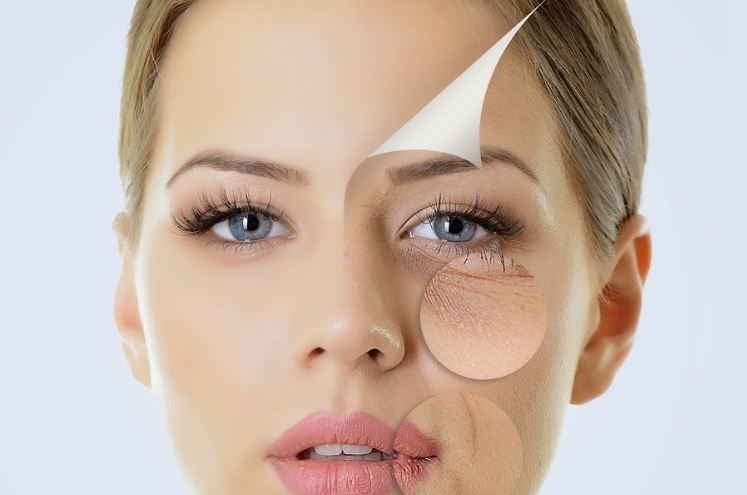 Penuaan kulit adalah proses biologi yang melibatkan banyak faktor serta tampak nyata pada penampilan individu. Penuaan kulit dapat dikelompokkan menjadi dua yaitu penuaan intrinsik yang dikaitkan dengan faktor genetik dan bagian dari proses alami penuaan serta penuaan ektrinsik yang disebabkan oleh faktor lingkungan seperti paparan sinar matahari atau radiasi UV (Ultra Violet). Penuaan ekstrinsik ini dapat disebut juga photoaging yang lebih sering mengenai orang berkulit cerah. Photoaging dapat menyebabkan kerutan, kekeringan, hilangnya kekenyalan, dan perubahan pigmen kulit. Hal ini disebabkan karena radiasi UV dapat meningkatkan pembentukan radikal bebas atau ROS (Reactive Oxygen Species). Sinar UV juga dapat meningkatkan aktivitas enzim yang membetuk pigmen kulit sehingga menyebabkan peningkatan produksi pigmen kulit yang akan menyebabkan perubahan pigmen kulit dan munculnya bintik hitam.
