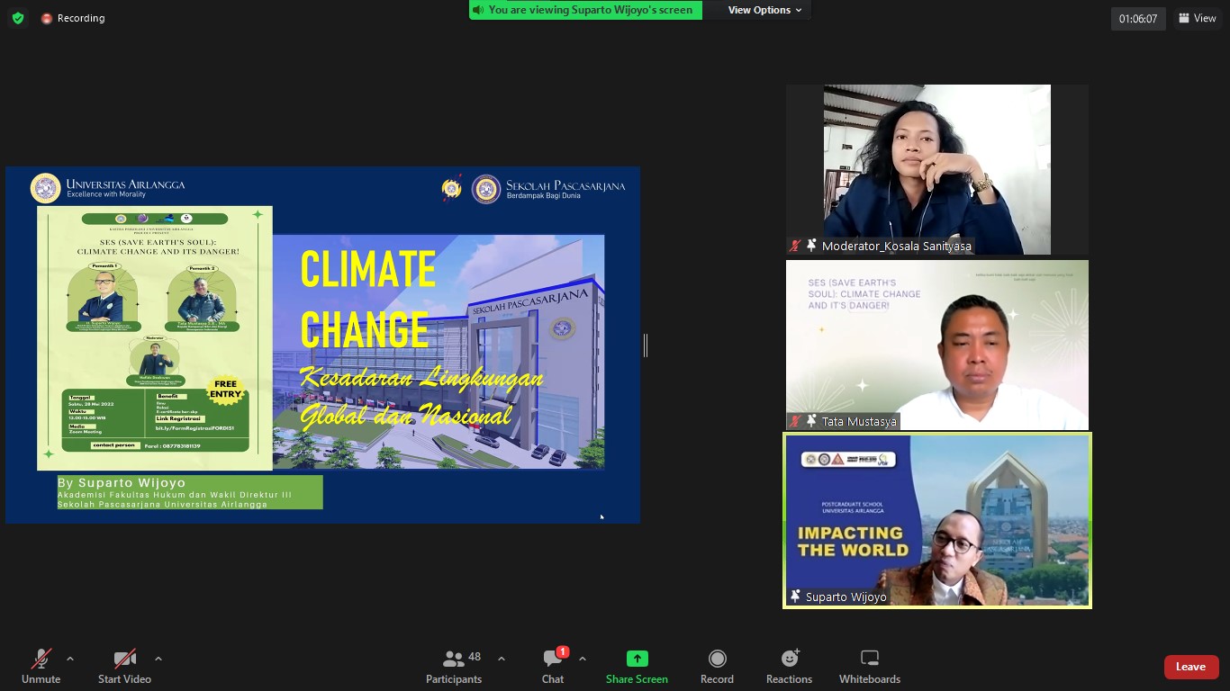 UNAIR NEWS – Permasalahan seputar perubahan iklim masih menjadi isu yang banyak dibicarakan oleh sebagian masyarakat. Perubahan iklim salah satunya sebagai tanda bahwa adanya problem