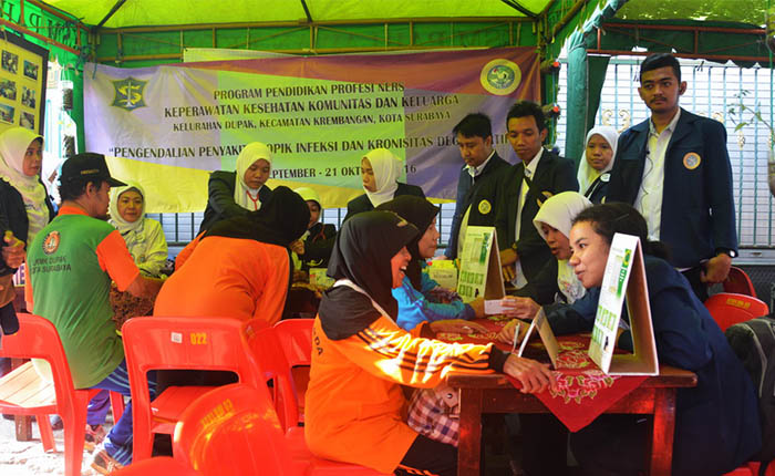 Mahasiswa FKp Universitas Airlangga meramaikan acara Pemkot Surabaya “Roadshow Pahlawan Ekonomi” di Kelurahan Dupak Bandarejo, Minggu (16/10) pagi.