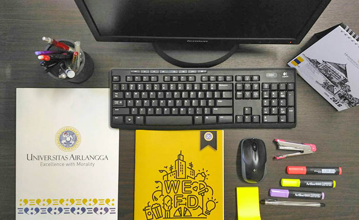 The Blue and Yellow PIMNAS contingent send off was marked with UNAIR’s flag given from UNAIR Rector to the Head of PIMNAS UNAIR Contingent, Agus Subiantoro, SH., M.Si.