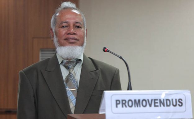 Marthen Hengky Toelle in his doctoral program exam of Legal Studies, Faculty of Law, Universitas Airlangga.