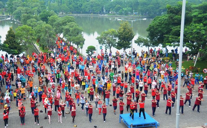 Kemeriahan terpancar dalam Senam Pagi dan Jalan Sehat yang diselenggarakan oleh Kantor manajemen Universitas Airlangga, Minggu (26/2).