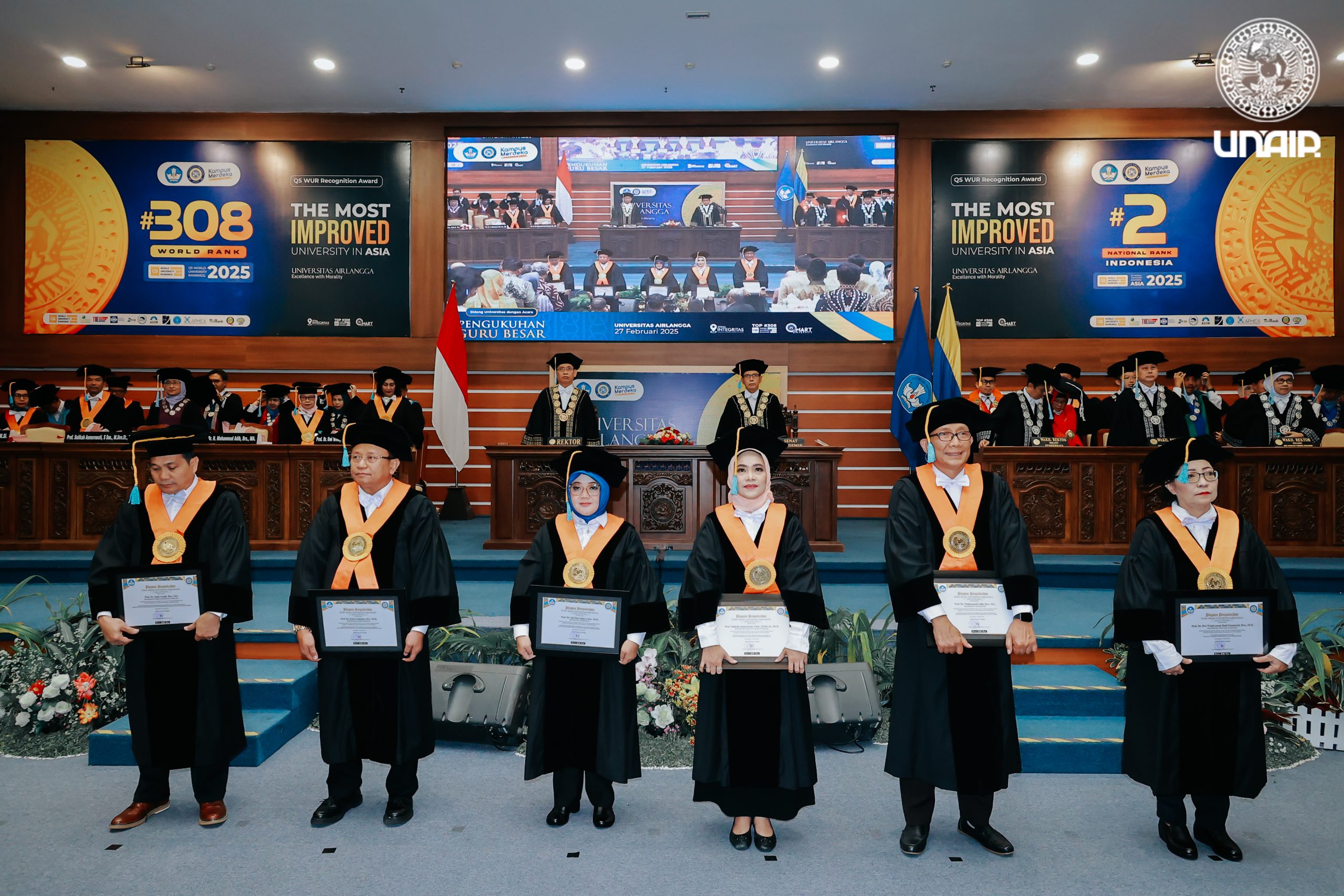 Pengukuhan guru besar baru kembali digelar oleh Universitas Airlangga (UNAIR). Momen tersebut berlangsung pada Selasa (25/2/2025), di Aula Garuda Mukti, Lt 5, Kantor Manajemen, Kampus