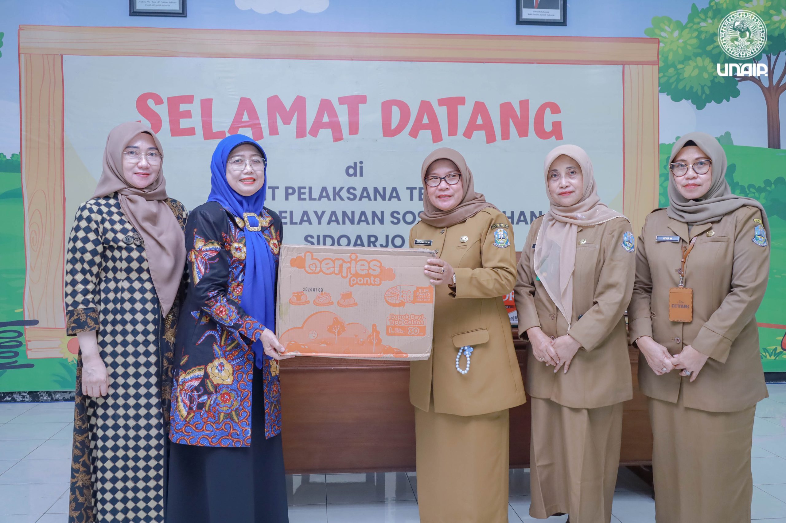 Dharma Wanita Persatuan Kantor Manajemen Universitas Airlangga melakukan kegiatan bakti sosial di Dinas Sosial Unit Pelaksana Teknis (UPT) Perlindungan dan Pelayanan Sosial Anak Asuhan Balita