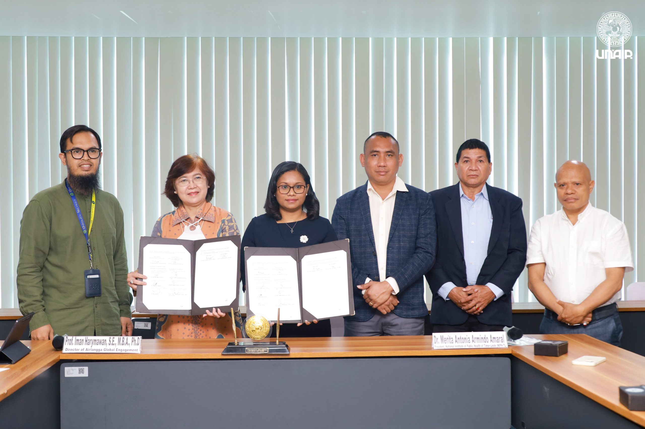 Universitas Airlangga (UNAIR) menerima kunjungan Instituto Nacional de Saúde Pública de Timor-Leste (INSP-TL) untuk melakukan penandatanganan perjanjian kerja sama pada Rabu (8/5/2024) di Ruang Dayak,