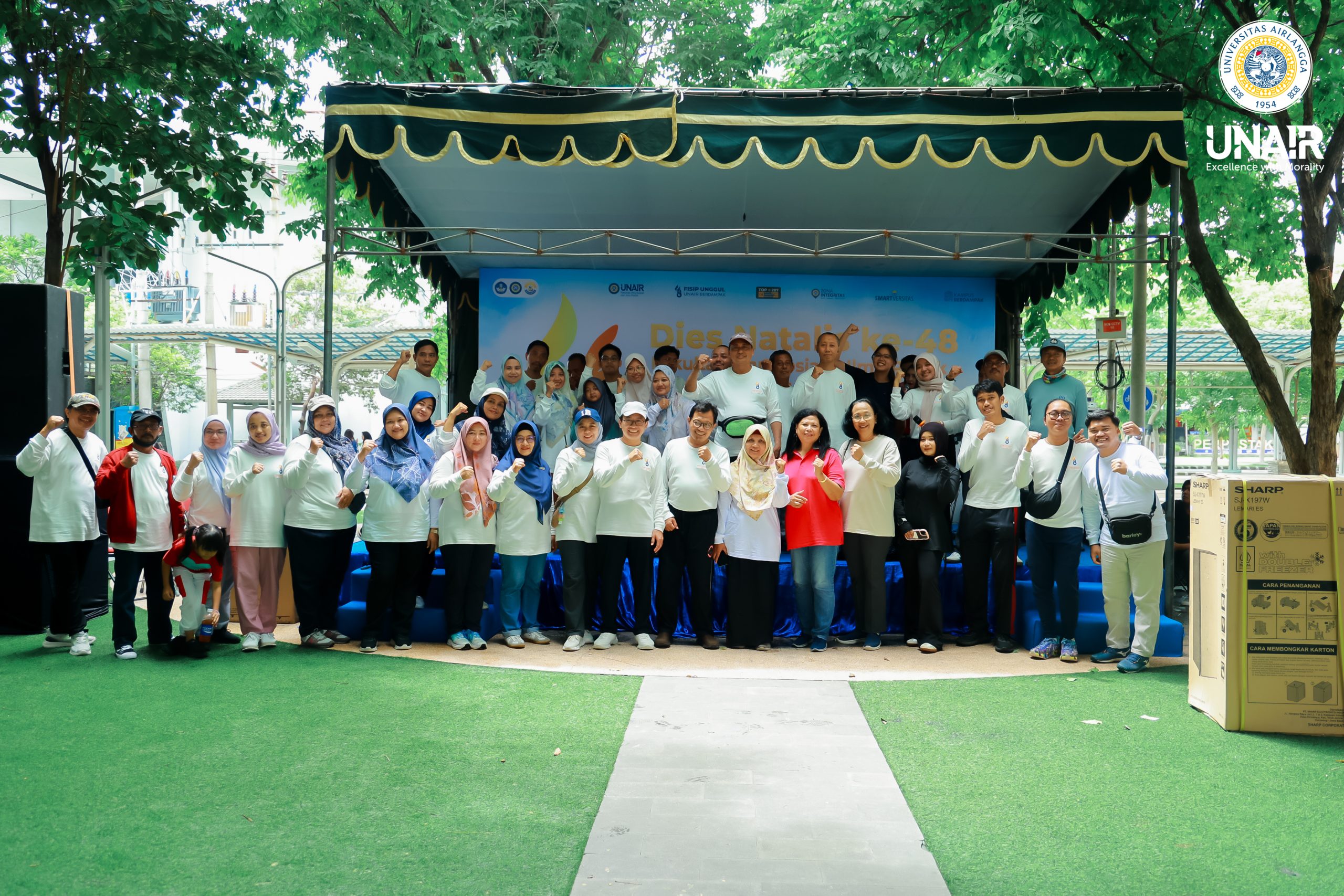 Fakultas Ilmu Sosial dan Ilmu Politik Universitas Airlangga (FISIP UNAIR) memeriahkan Dies Natalis ke-48 dengan menggelar kegiatan senam pagi dan jalan sehat pada Sabtu, 13