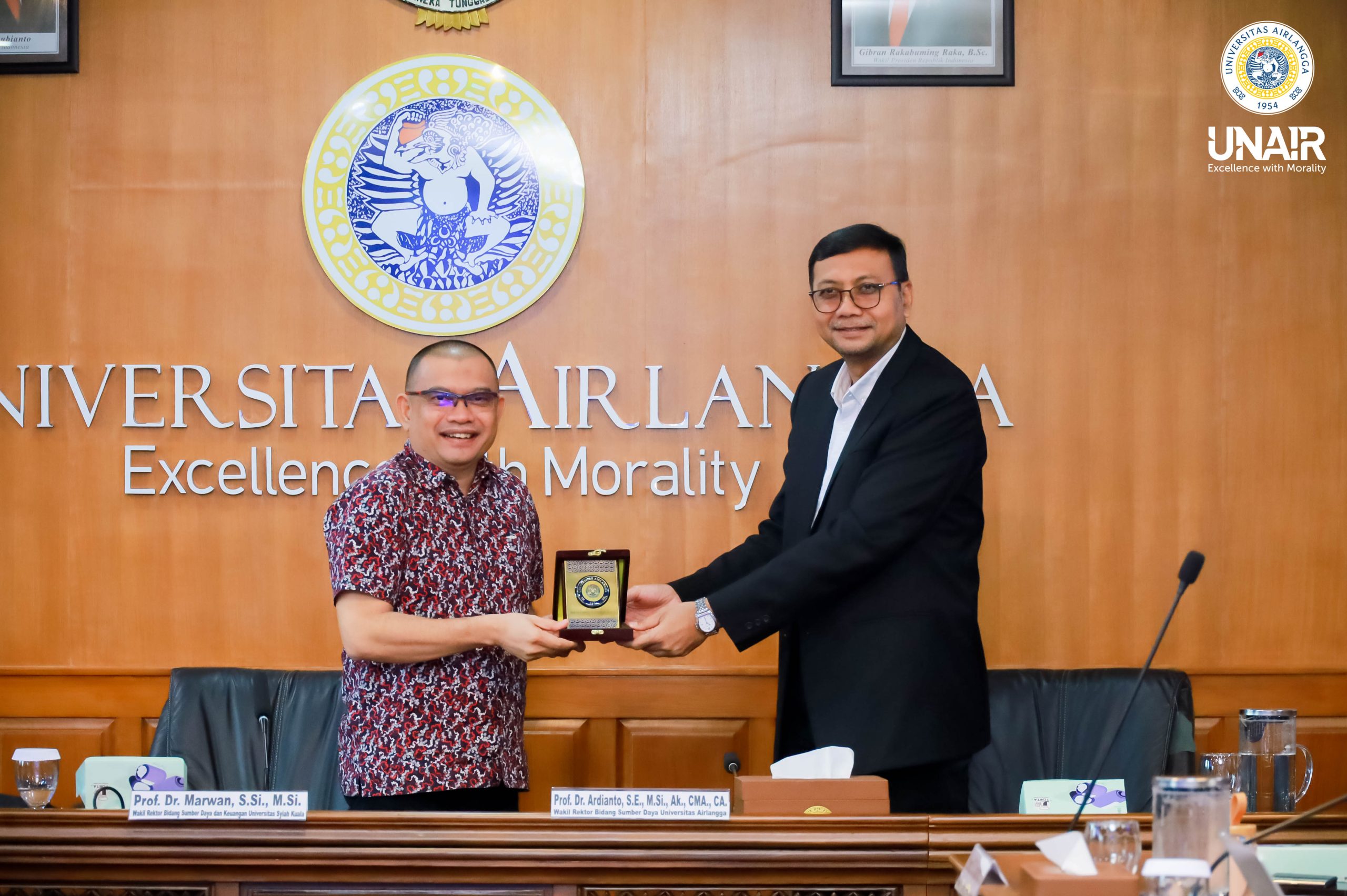 Universitas Airlangga (UNAIR) menerima kunjungan resmi dari Universitas Syiah Kuala (USK) pada Jumat (12/12/2025) di Ruang Sidang Pleno Balairua, Lantai 4 Kantor Manajemen Rektorat Kampus