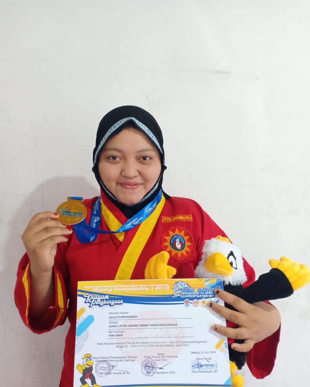 UNAIR NEWS – Galuh Purwaningsih, a student from Nutrition Study Program Faculty of Public Health (FKM) Universitas Airlangga won a martial arts achievement. In addition,