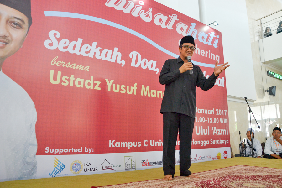 “Wisata Hati, Sedekah, Do’a, dan Sholawat” with Ustaz Yusuf Mansur in Ulul Azmi Mosque, Campus C Universitas Airlangga, on Sunday, January 29.