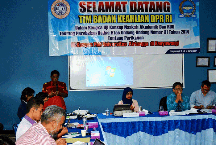 PDD Universitas Airlangga di Banyuwangi terpilih sebagai salah satu tempat dilaksanakannya kegiatan Uji Konsep Naskah Akademik dan Rancangan Undang-Undang (RUU) perubahan Undang-undang Nomor 31 Tahun 2004 tentang Perikanan oleh Tim Ahli Dewan Perwakilan Rakyat (DPR) RI, Rabu (15/3).