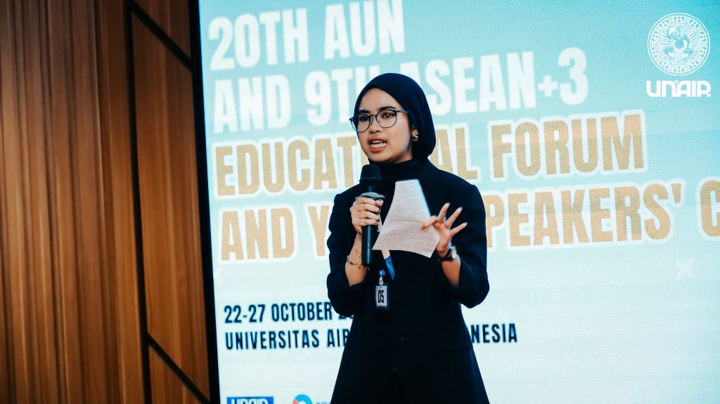 The 20th AUN and 9th ASEAN+3 Educational Forum and Young Speakers’ Contest (AUN ED-YSC) yang berlangsung di Universitas Airlangga (UNAIR) resmi berakhir pada Sabtu (26/10/2024). Acara bergengsi ini bertujuan untuk mendorong kolaborasi internasional dengan melibatkan peserta dari negara-negara Asia Tenggara dan Asia Timur dalam memecahkan masalah global di bidang pendidikan, sosial, dan lingkungan. Diselenggarakan di Mataram Hall, ASEEC Tower, Kampus Dharmawangsa-B UNAIR, acara ini juga diakhiri dengan sesi pemberian penghargaan kepada para peserta yang berprestasi.