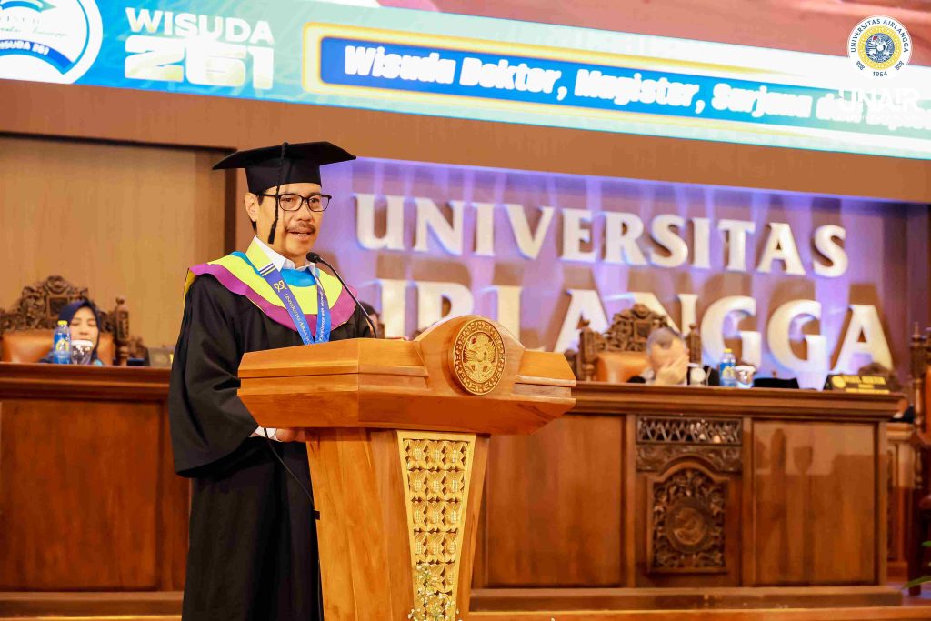 Bersamaan dengan momentum Wisuda Periode 261 UNAIR, di hadapan para wisudawan, Supriyanto menyampaikan rasa bangganya menjadi bagian Ksatria Airlangga. Ia mengungkapkan bahwa keberhasilannya saat ini tidak lepas dari ekosistem pendidikan di UNAIR yang sangat suportif.