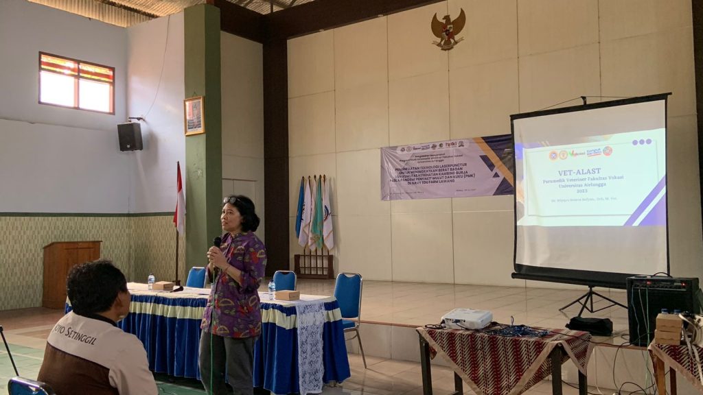 “Pandemi PMK ini memberikan dampak mental yang sangat signifikan terhadap dunia peternakan khususnya para peternak. Harapannya, inovasi laserpunctur dapat membangkitkan kembali semangat peternak untuk terus mengupayakan yang terbaik baik ternaknya,” tutur Dr Miyayu Soneta Sofyan drh MVet saat penyampaian materi.