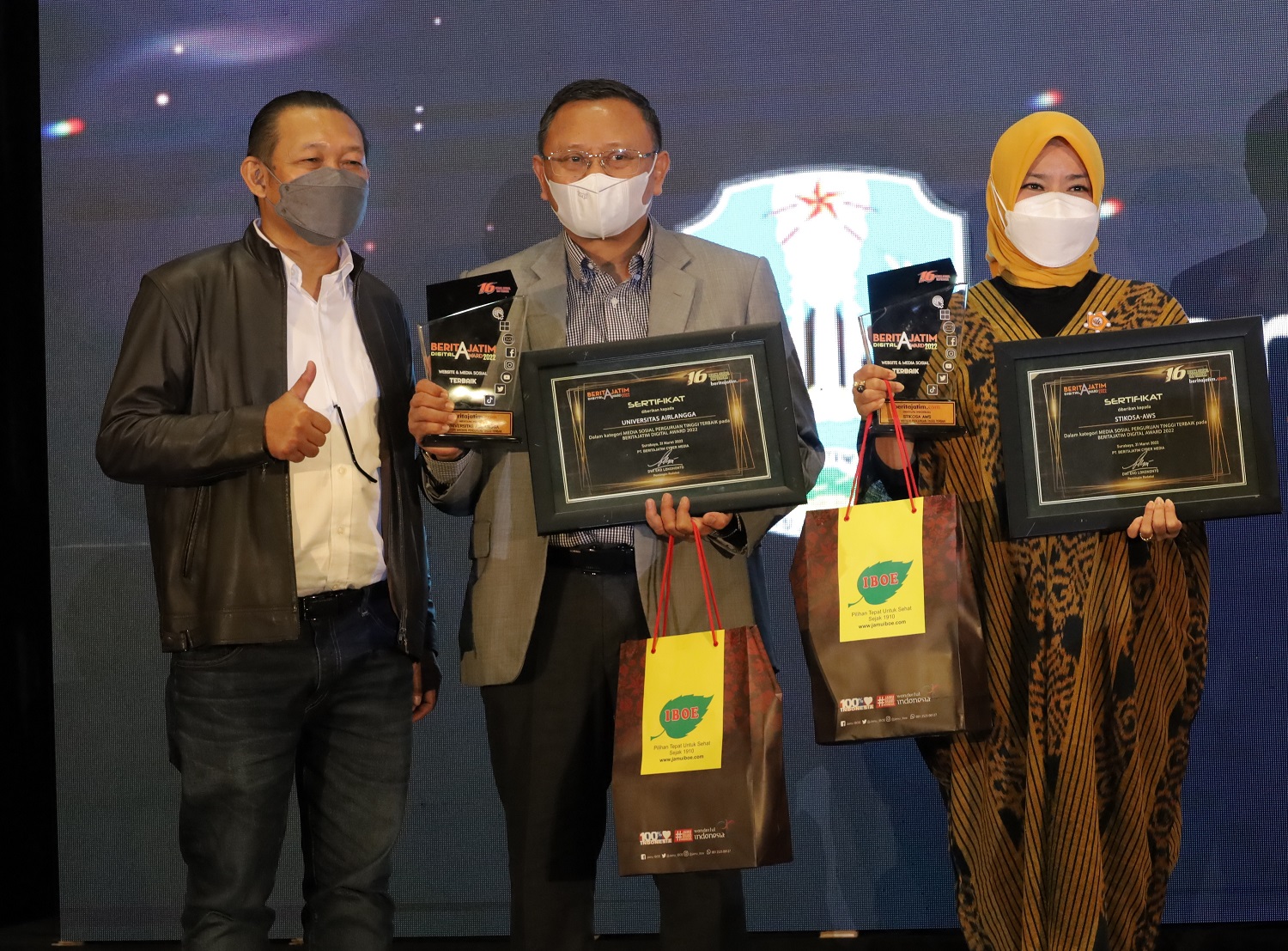 UNAIR NEWS – Universitas Airlangga receives an award at 2022 Berita Jatim Award, Best Social Media. The award was presented for the celebration of the