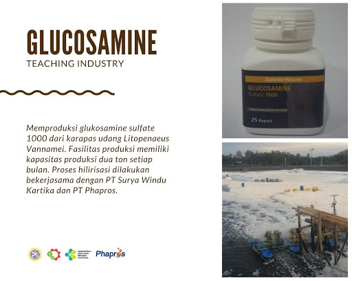 Standardized glucosamine drug from vannamei shrimp waste. This product aims to achieve domestic glucosamine independence and provide significant added value for the national shrimp industry.