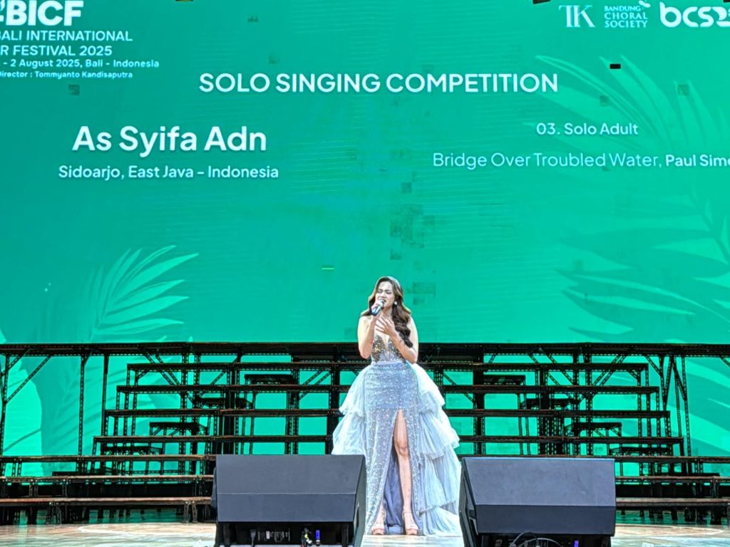 UNAIR NEWS – As Syifa Adn, a student at Universitas Airlangga’s Faculty of Medicine, has once again brought pride to the university by earning a gold medal at an international singing competition. Known well as Syifa, the student claimed first place in the Solo Singing competition, held during the Bali International Choir Festival in Badung, Bali, from Tuesday to Thursday (July 29 – August 2, 2025).
