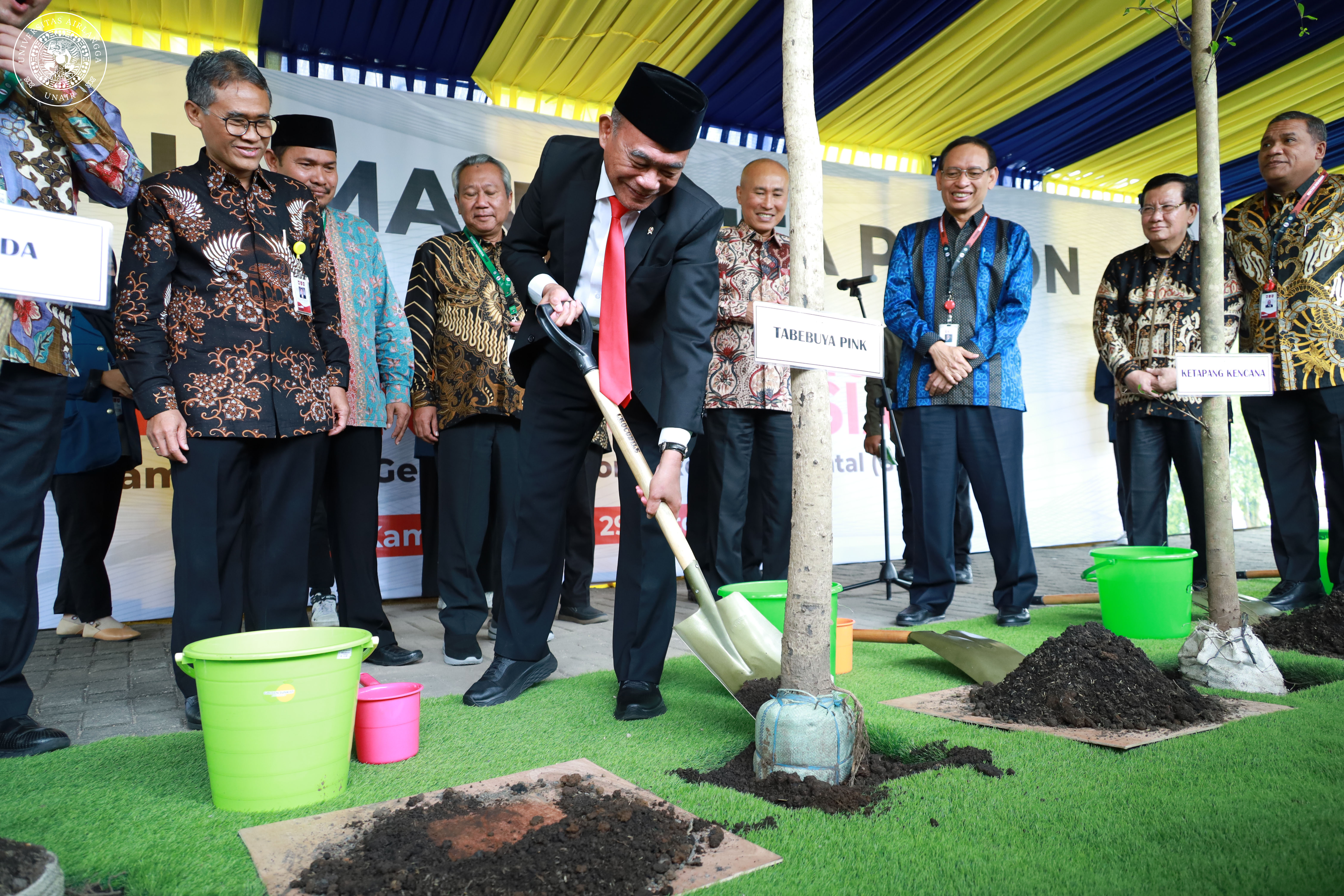 The planting symbolizes the commitment of higher education institutions to sustainability. The planted trees were maja (Aegle marmelos), tabebuia (Tabebuia sp), ketapang kencana (Terminalia mantaly), flamboyant (Royal poinciana), pulai (Alstonia scholaris), and kiacret (Spathodea campanulata).