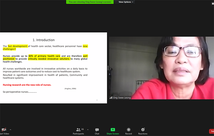 UNAIR NEWS – Sebagai wujud kerja sama antara Universitas Airlangga dengan School of Nursing Science, Faculty of Medicine, Universiti Sultan Zainal Abidin, Malaysia, Fakultas Keperawatan Universitas Airlangga (FKp UNAIR) menggelar kuliah tamu yang diisi oleh Ong Swee Leong, PhD. Kuliah tamu yang digelar via Zoom Meeting tersebut membahas mengenai Models and Standards of Perioperative Service in Innovation-based Nursing.