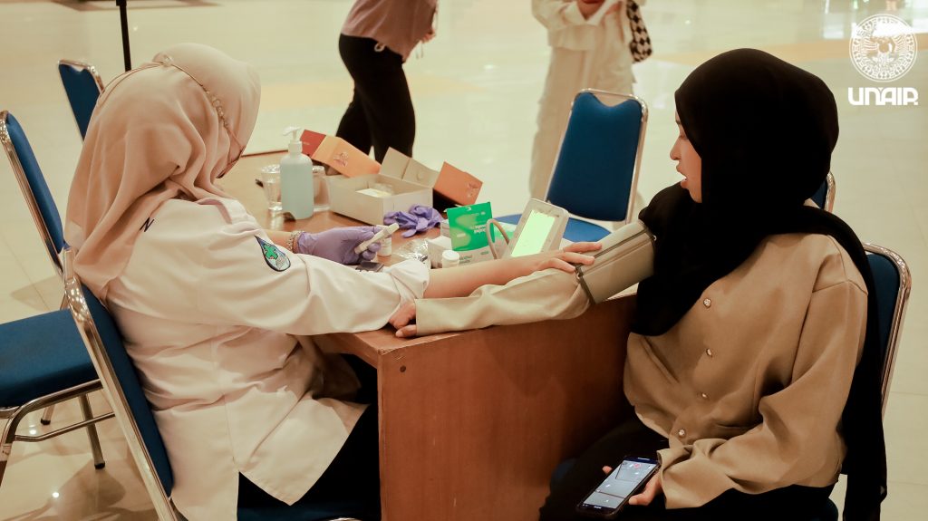 Airlangga Health Promotion Center (AHPC) UNAIR menyelenggarakan cek kesehatan gratis khusus sivitas akademika UNAIR. Kegiatan ini berlangsung pada Rabu (12/2/25) di Gedung Airlangga Convention Center, Kampus MERR-C. Cek kesehatan meliputi BMI, IVA, dan donor darah. Ketua AHPC, Dr. Sri Widati, S.Sos., M.Si. memaparkan tujuan cek kesehatan ini adalah untuk melakukan upaya supaya sivitas akademika selalu sehat dan bahagia. Cek kesehatan ini merupakan skrining awal dan deteksi dini pencegahan penyakit sebelum terjadi. Dalam upaya menyukseskan kegiatan ini, AHPC UNAIR bekerja sama dengan Dinas Kesehatan Surabaya dan Palang Merah Indonesia (PMI). Lebih lanjut Dr. Sri Widati S.Sos. M.Si berharap seluruh sivitas akademika UNAIR menjadi sehat, mengetahui kondisi tubuh, dan selalu bahagia.