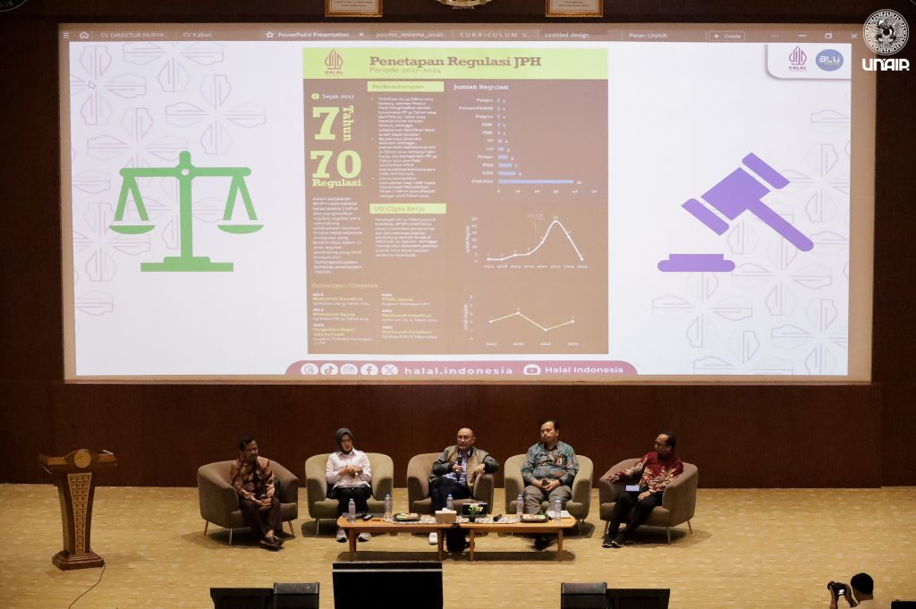 Universitas Airlangga (UNAIR) melalui Pusat Halal kembali menegaskan komitmennya dalam penguatan ekosistem halal nasional melalui penyelenggaraan Airlangga KHAIR 2025, Konferensi Nasional Halal dan Inovasi Riset, pada hari Rabu (25/6/2025). Acara ini berlangsung di Auditorium Ternate, ASEEC Tower Lantai 1, dengan mengangkat tema, Harmonisasi Regulasi pada Hulu Sertifikasi Halal dan Inovasi untuk Keberlanjutan Ekosistem Halal.