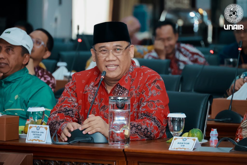 Dalam rangka menguatkan kolaborasi, Paguyuban Perguruan Tinggi Negeri (PTN) se-Jawa Timur menggelar rapat kerja bersama. Kegiatan tersebut berlangsung Selasa (27/5/2025), di Aula Amerta, Lt 4 Kampus MERR-C Universitas Airlangga (UNAIR), selaku tuan rumah.