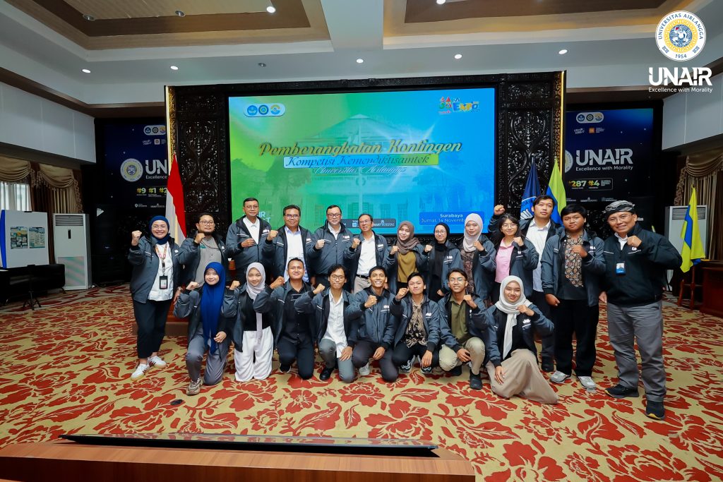 Universitas Airlangga (UNAIR) resmi melepas putra-putri terbaiknya dalam ajang bergengsi Pekan Ilmiah Mahasiswa Nasional (PIMNAS) ke-38 dan Kewirausahaan Mahasiswa Indonesia (KMI) Expo XVI. Pelepasan tersebut berlangsung pada Jumat (14/11/2025) di Ruang Amerta, Lantai 4, Kantor Manajemen Kampus MERR-C UNAIR. Sebanyak 4 kontingen PIMNAS dan 3 kontingen KMI Expo dilepas secara langsung oleh rektor dan jajaran pimpinan universitas.