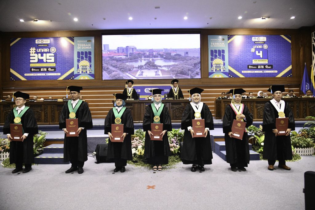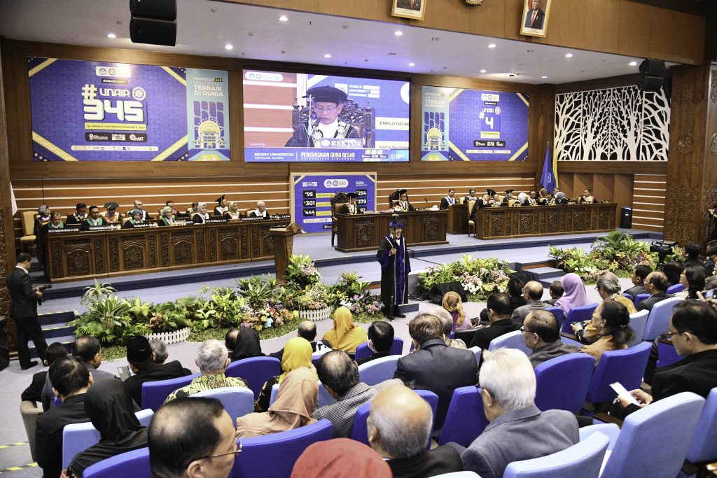 Rektor Universitas Airlangga (UNAIR) Prof Dr Mohammad Nasih SE MT Ak, mengukuhkan tujuh guru besar baru di lingkungan UNAIR. Penambahan guru besar tersebut semakin memperkokoh peran UNAIR bagi pendidikan di Indonesia dan dunia. Upacara pengukuhan tersebut berlangsung pada Rabu (18/10/2023) di Aula Garuda Mukti, UNAIR.
