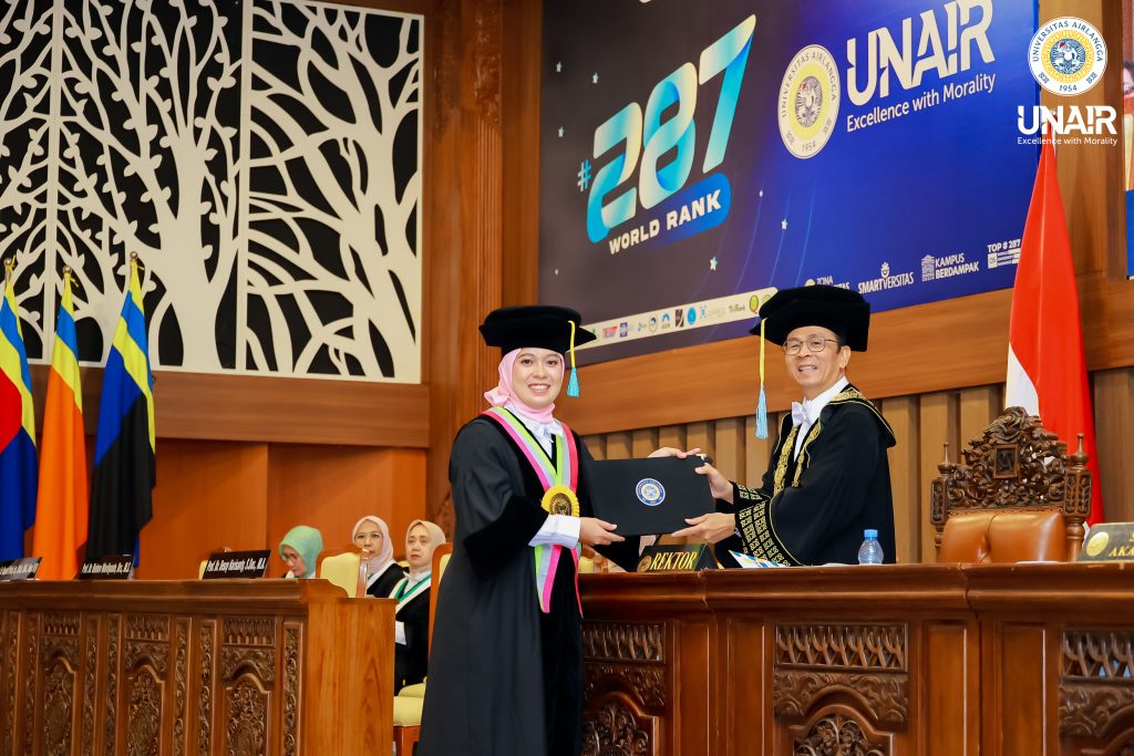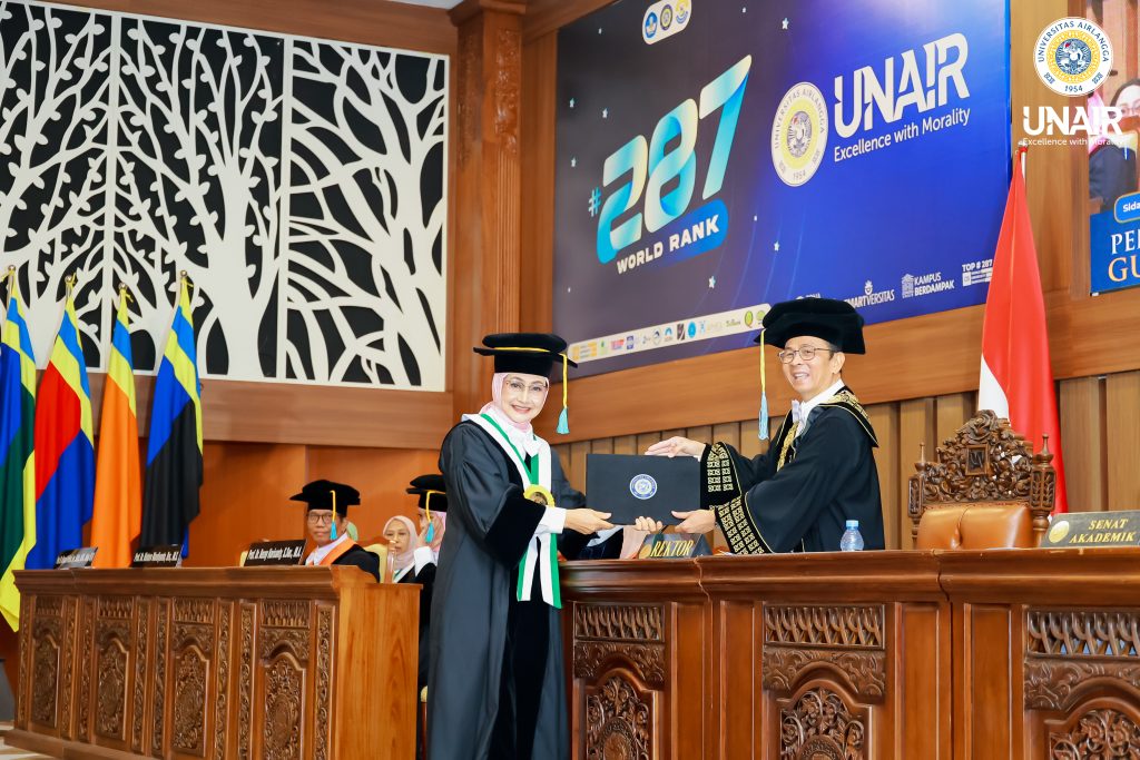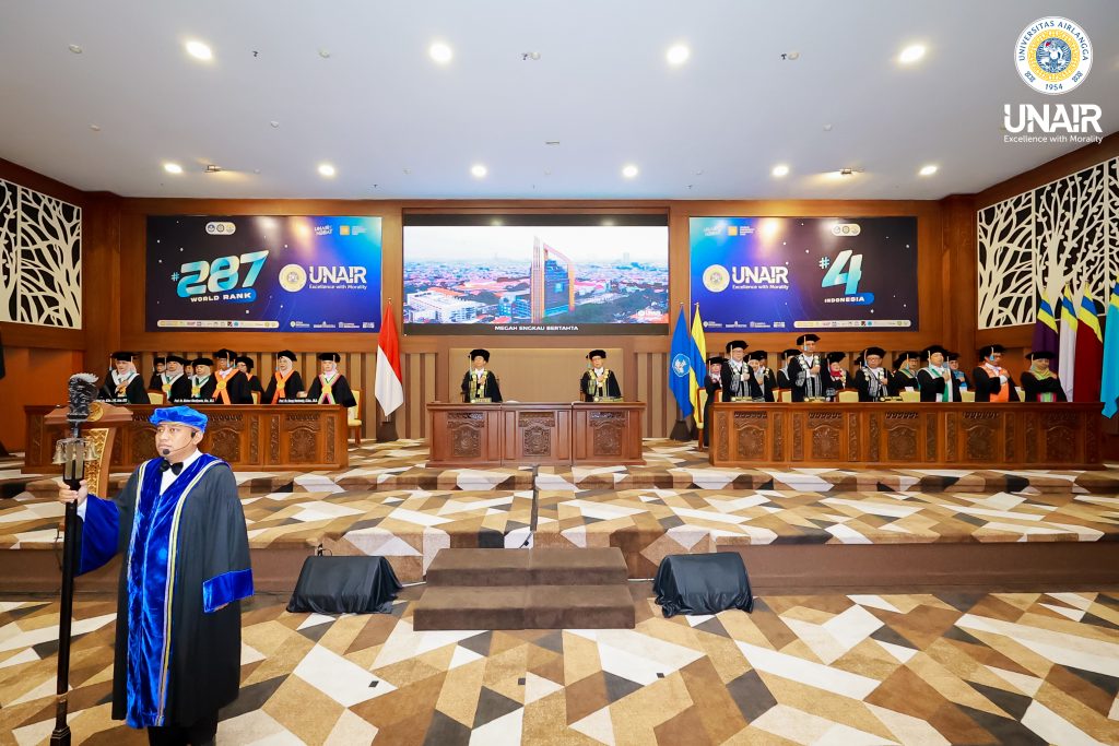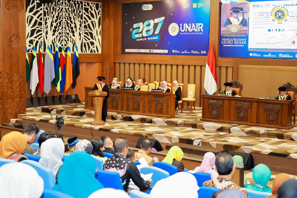 Universitas Airlangga (UNAIR) kembali mengukuhkan tiga guru besar baru. Sidang pengukuhan yang digelar pada Rabu (29/10/2025) di Aula Garuda Mukti, Kampus MERR-C, menjadi momen penting para akademisi dalam menapaki puncak karier keilmuannya. Pengukuhan ini sekaligus menambah deretan profesor yang akan memperkuat kontribusi UNAIR dalam bidang pendidikan, riset, dan inovasi di kancah nasional maupun global.
