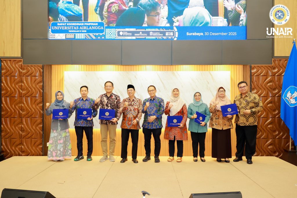 Universitas Airlangga (UNAIR) menggelar Rapat Koordinasi Pimpinan Triwulan IV Tahun 2025 pada Selasa (30/12/2025). Kegiatan tersebut berlangsung di Hall Lantai 1 Gedung Manajemen, Kampus MERR-C UNAIR. Hadir dalam kegiatan ini jajaran pimpinan UNAIR, mulai dari Rektor, Wakil Rektor, Dekan Fakultas, Direktur Direktorat, hingga pimpinan unit kerja di lingkungan UNAIR.