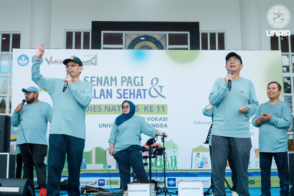 Fakultas Vokasi Universitas Airlangga (UNAIR) selenggarakan Senam dan Jalan sehat bersama seluruh civitas akademika UNAIR serta masyarakat umum. Kegiatan ini merupakan bagian dari perayaan Dies Natalis Fakultas Vokasi ke 11. Senam dan jalan sehat berlangsung di Halaman Kantor Rektorat, Kampus Merr-C UNAIR pada Minggu (15/6/2025). Kegiatan ini, dibuka langsung oleh Rektor UNAIR Prof Muhammad Nasih MT AK CA. Dalam sambutannya, ia menyampaikan apresiasi kepada Fakultas Vokasi selama ini sebagai salah satu fakultas bagi berbagai pencapaian.