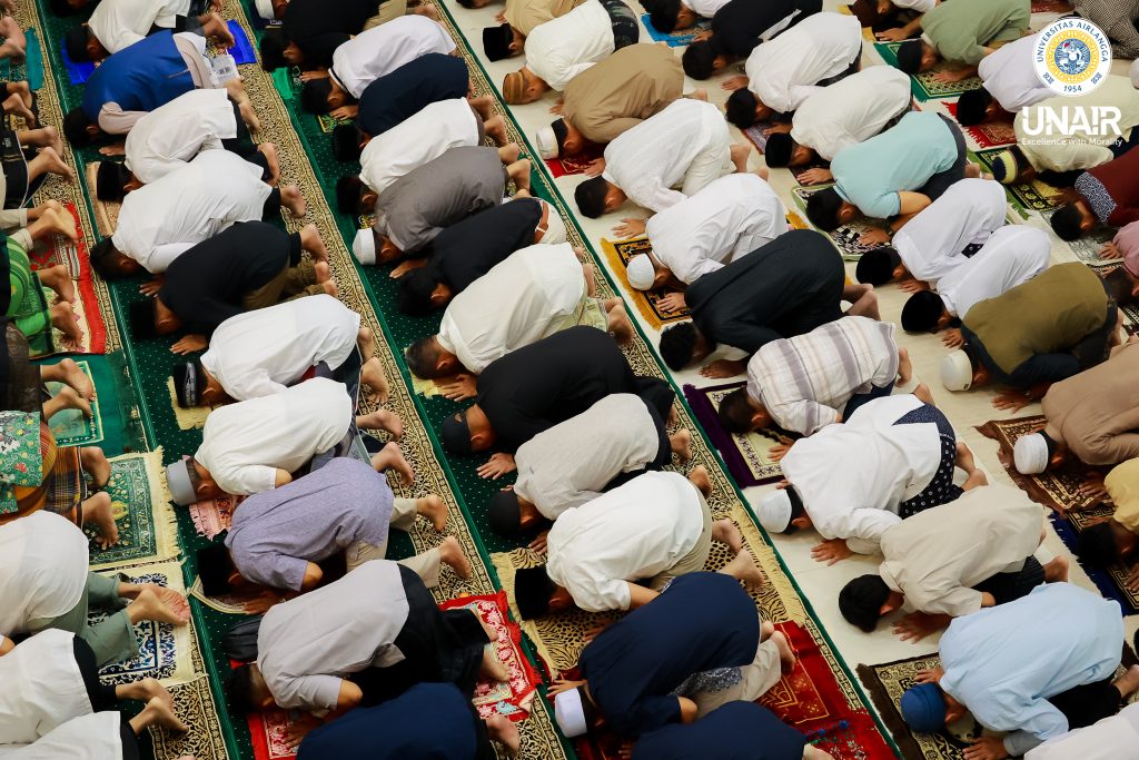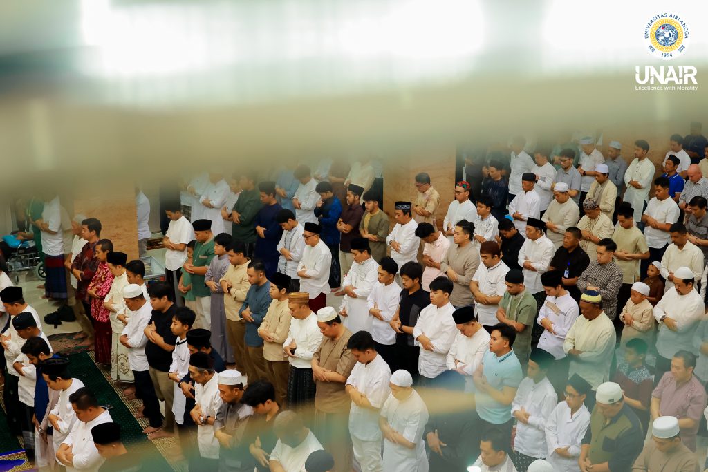 Universitas Airlangga (UNAIR) menggelar Salat Idulfitri 1447 Hijriah pada Sabtu (21/3/2026) di Masjid Ulul Azmi Kampus MERR-C. Pelaksanaan salat berlangsung khusyuk dengan dihadiri civitas akademika UNAIR serta masyarakat sekitar kampus.
