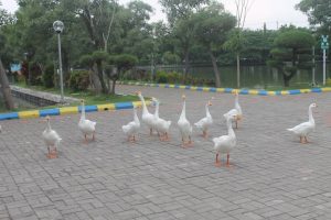 UNAIR NEWS – Danau kampus C Universitas Airlangga (UNAIR) merupakan salah satu spot asyik untuk menikmati sore. Angsa-angsa yang berbaris
