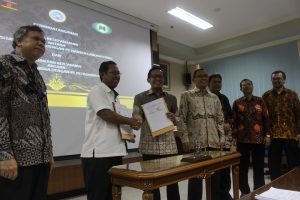 Penandatanganan kontrak kinerja dilangsungkan di Aula Garuda Mukti, Kantor Manajemen UNAIR, Senin (6/2).