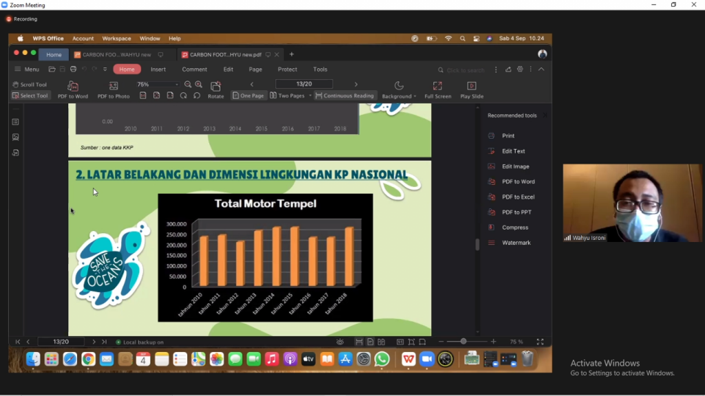 In this regard, on Saturday, September 4, 2021, the BEM (Student Executive Board) of the Faculty of Fisheries and Marine Sciences (FPK) through the Department of Strategic Studies and Action (Kastrat) held another study to discuss the Carbon Footprint. Entitled PSBB (Casual Discussion with FPK BEM), the study presented Wahyu Isroni S.Pi., M.P., as a lecturer of FPK UNAIR.