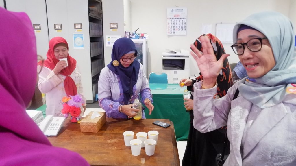 Untuk itu, sebagai upaya untuk menguatkan imunitas tubuh, Guru Besar Universitas Airlangga Prof. Dr. Mangestuti Agil Apt., MS., mengajak jajaran tenaga kependidikan di lingkungan Fakultas Farmasi untuk meminum jamu. Kegiatan yang dilangsungkan di beberapa ruang tendik FF UNAIR itu, berlangsung saat istirahat siang pada Selasa (10/3).